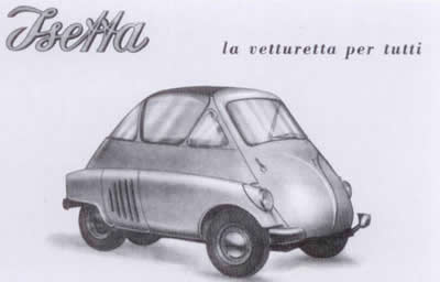 Iso created this unique car design in the early 1950s, an obvious extension of their motorcycle business. Starting in 1954, the Isetta design was licensed to automobile manufacturers around the world: France (by VELAM), Spain, Great Britain and Brazil (by Romi). The most successful, however, was the BMW Isetta. The Isetta was a financial success for BMW and the royalties paid to Iso allowed Renzo Rivolta to move on to developing GT cars and the income from the Isetta was important for BMW as well.